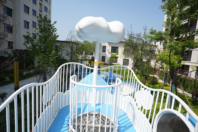 飞鲸游乐团队,结合项目场地特点,设计出以“跃动的鲸鱼”为主题的地产景观乐园。乐园集“游乐、运动、休憩和自然生态”为一体,满足家庭亲子互动需求,也为各年龄层居民提供更富创意与美感的的户外休闲空间。