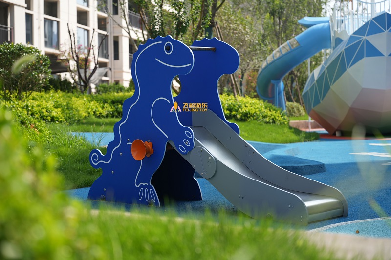 恐龙滑梯:恐龙造型,小巧精致,适合幼儿使用,家长在旁陪伴,享受美好亲子时光。