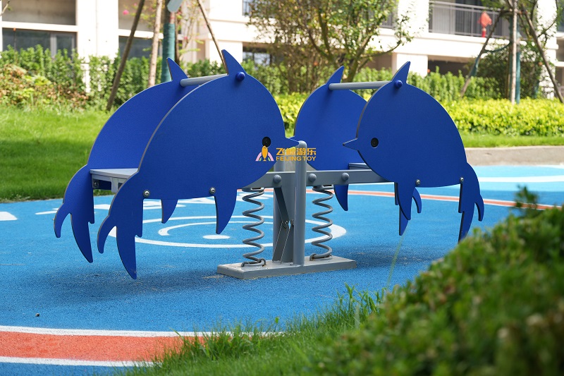 跷跷板:蓝色海豚造型可爱迷人,可幼儿乘坐,也可亲子同乐,休闲放松带来好心情。