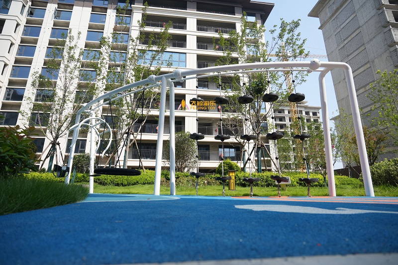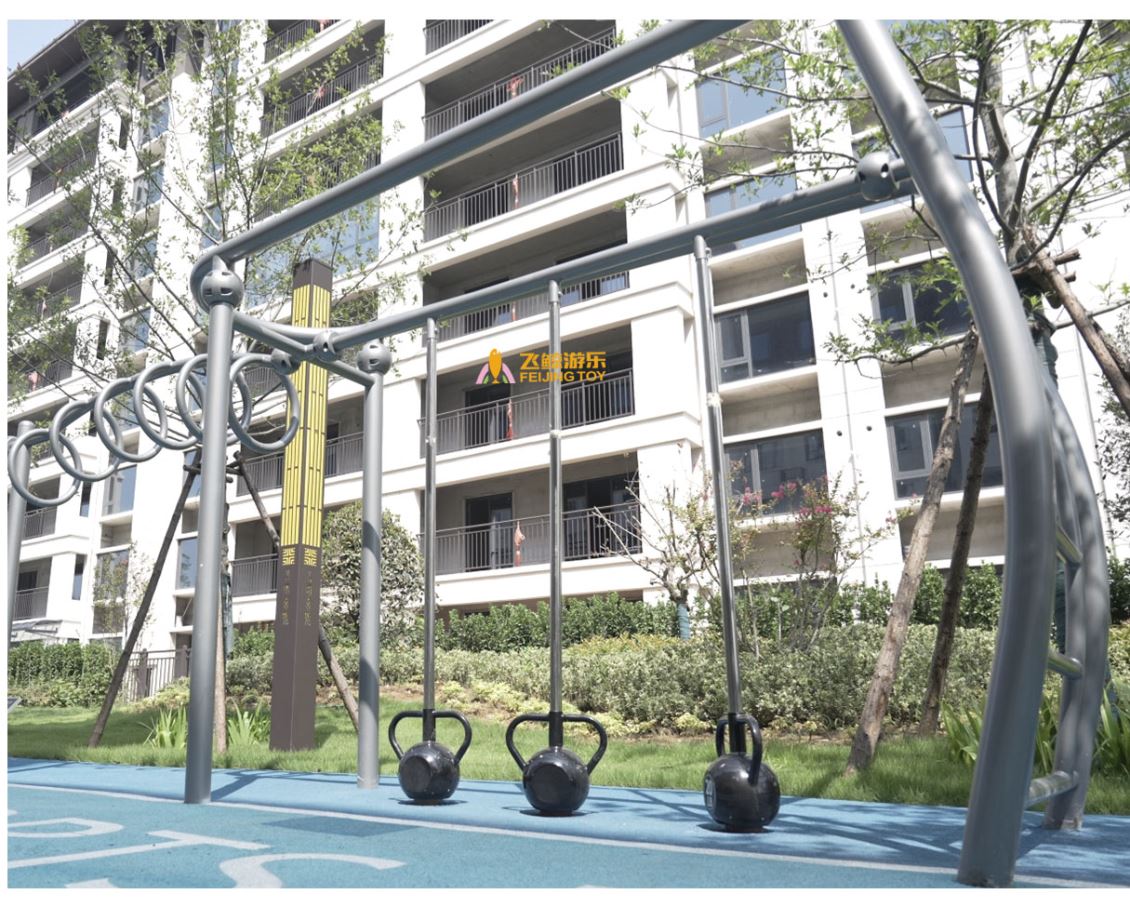 悦动健身区融合攀爬网、单杠、吊环、壶铃、乒乓球台为一体,打造全年龄、多样化的多功能健身场所,让 “健康生活” 真正融入居民的日常,让社区成为更有温度、更有活力的 “幸福家园”。