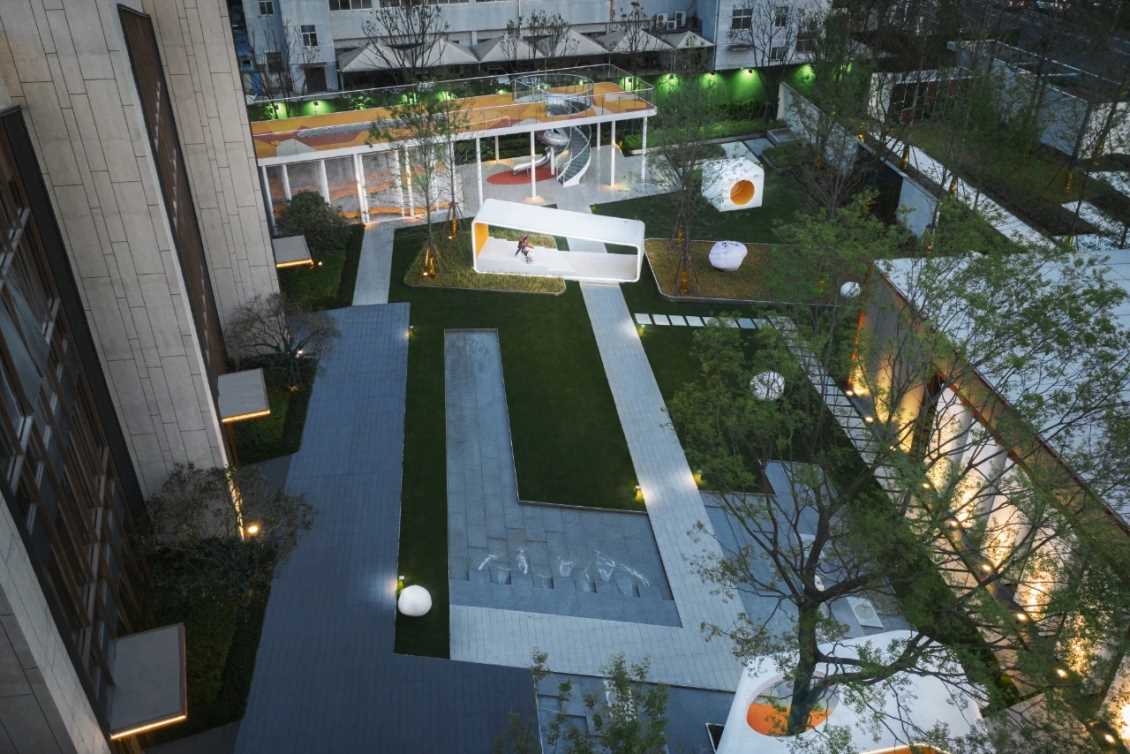 穿过绿意鲜氧的草坪空间,是一处欢快的绿洲湖北儿童乐园。大小不一的森林盒子、功能的多样、几何的拼贴、趣味的廊架、层叠的绿意。奔跑、攀爬、躲藏、学习,处处皆有惊喜,处处皆是乐趣。构筑本身不会限定他们的行为,而是在时时刻刻释放他们的天性,激发孩子们的好奇心和无尽的想象力。
