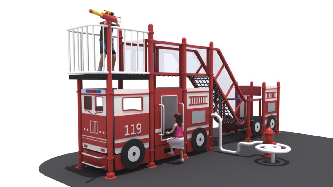 标签:定制滑梯系列,非标定制——PE消防车主题,